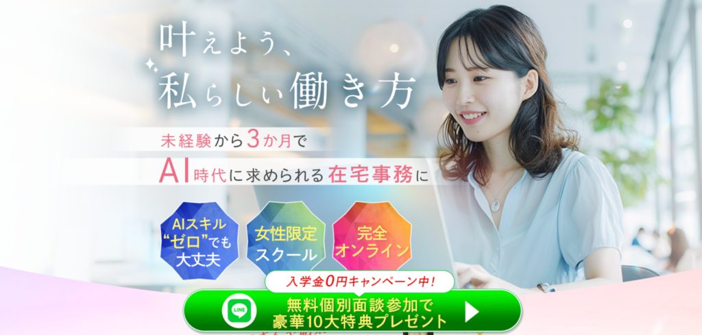 - 女性のキャリアに最適なAI事務スキルで安定収入を得ることができる