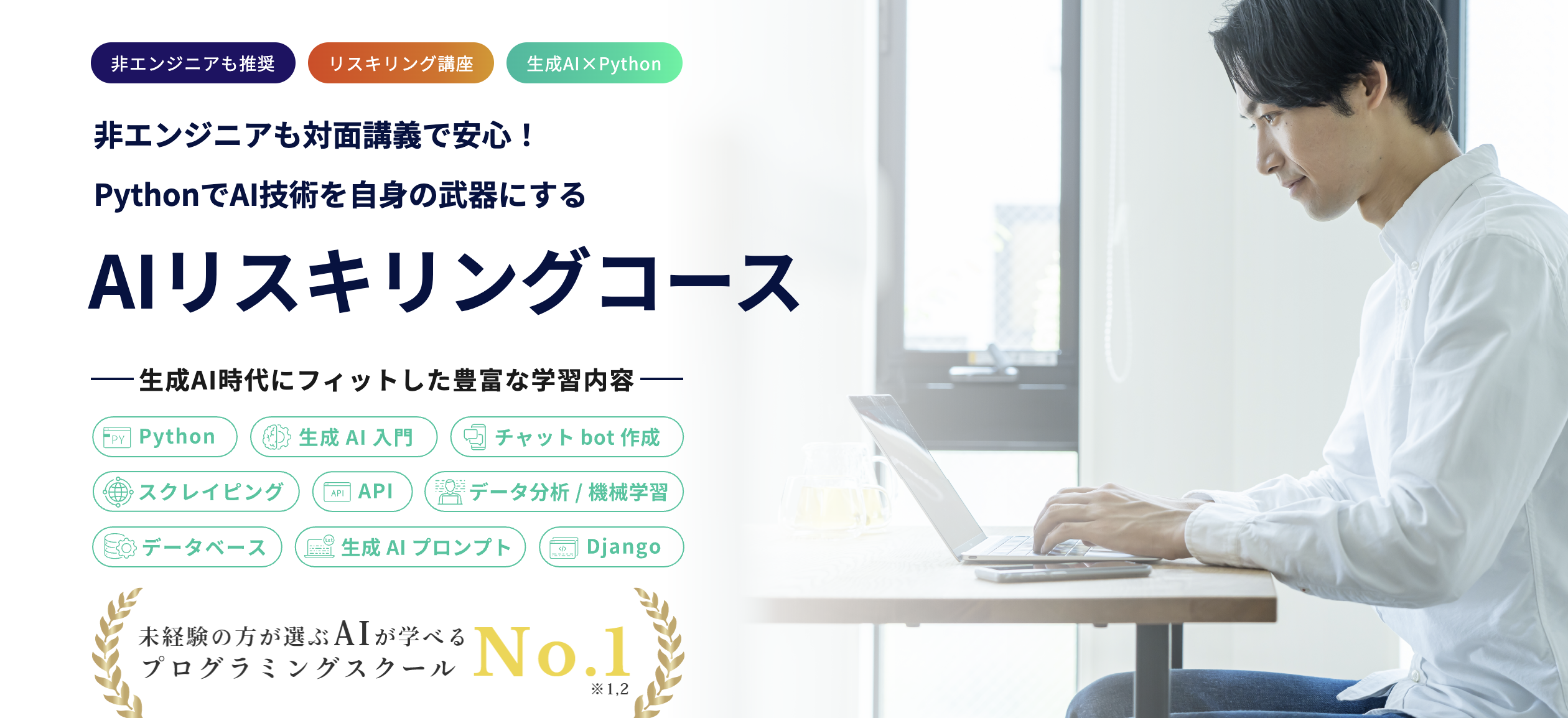 - 受講者数No.1の最大手AIスクール