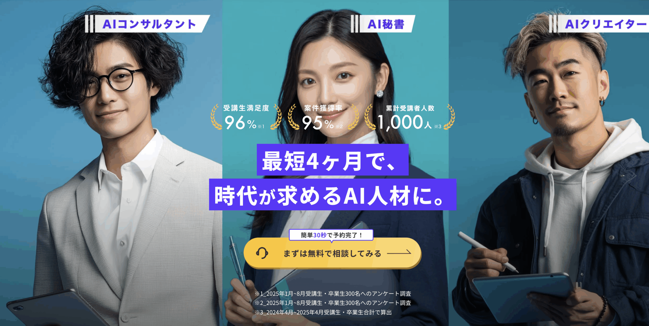 AIに特化したスクールではないものの、フリーランスとして必須のスキルを同時に習得したい方にはおすすめのスクールとなっています。