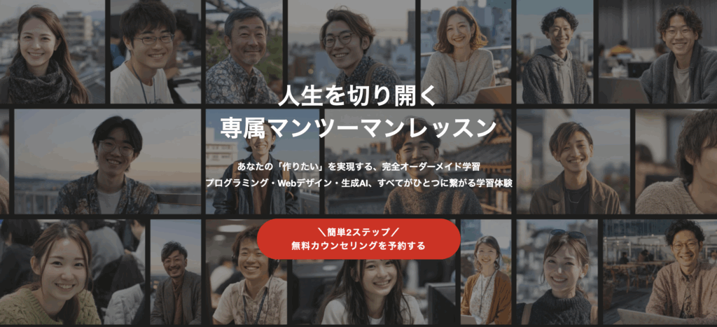 ビジネス活用、クリエイター、エンジニアといった、それぞれのキャリア目標に合わせた専門コースが用意されています。将来の独立や転職など、自分のゴールから逆算して最適なカリキュラムを選べるため、効率的に必要なスキルを習得できます。